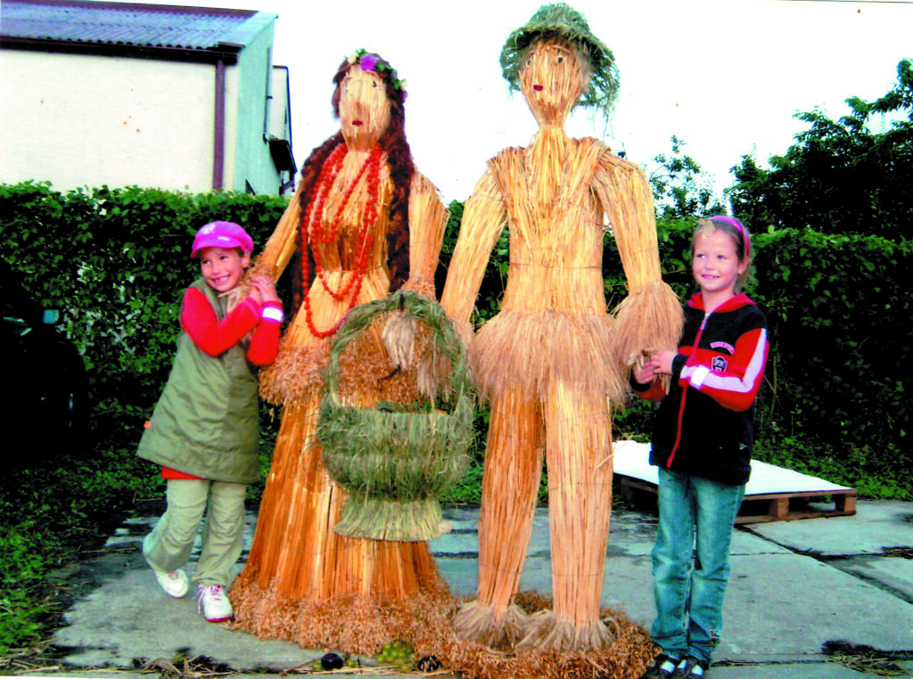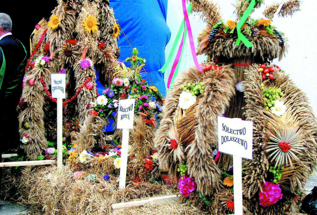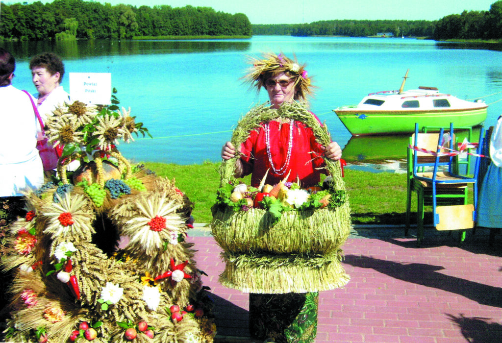 -Wyplatanie wieńca jest bardzo czasochłonne i wymaga dużej pomysłowości – opowiada. – Już od wiosny z pobliskich pół, lasów i ogrodów zbieram zioła, kwiaty, trawy, a w czerwcu kłosy zbóż. Zboża powinny być niedojrzałe, na pół zielone. Wszystko ścinam ręcznie, wieszam i suszę w ciemnym miejscu. Przed pleceniem układam zboża w małe wiązeczki i dopiero wtedy umieszczam na stelażu. Używam również wysuszonych ziaren zbóż i drobnych owoców, takich jak: len, jarzębina, dzika róża, pestki dyni, przyklejonych lub nawleczonych na nici. Gotowy wieniec przyozdabiam suszonymi kwiatami zatrwianu, suchołuski, miechunki, lawendy, wrotycza oraz wstążkami. Żywymi kwiatami i owocami wieniec ozdabiam dopiero w dniu dożynek. Zawsze przy wyplataniu wieńców wspierały mnie koleżanki z KGW.